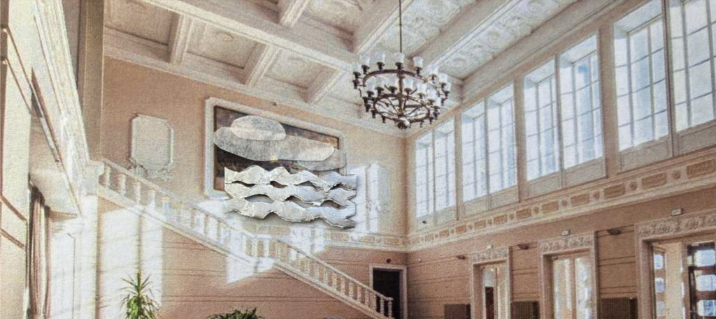 We turn to the artists to find a solution for contextualizing and reframing their works. The initial task is to reduce the propagandistic symbolism from the paintings, while preserving the role of the paintings in the structure of the interior. View of Moscow needs a critical reframing, in the case of Sagrits’s work we are looking for a solution regarding the red flag flying on the Hermann Tower – whether its replacement, conceptual covering, framing, etc.
