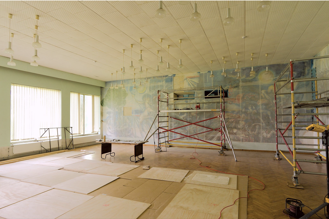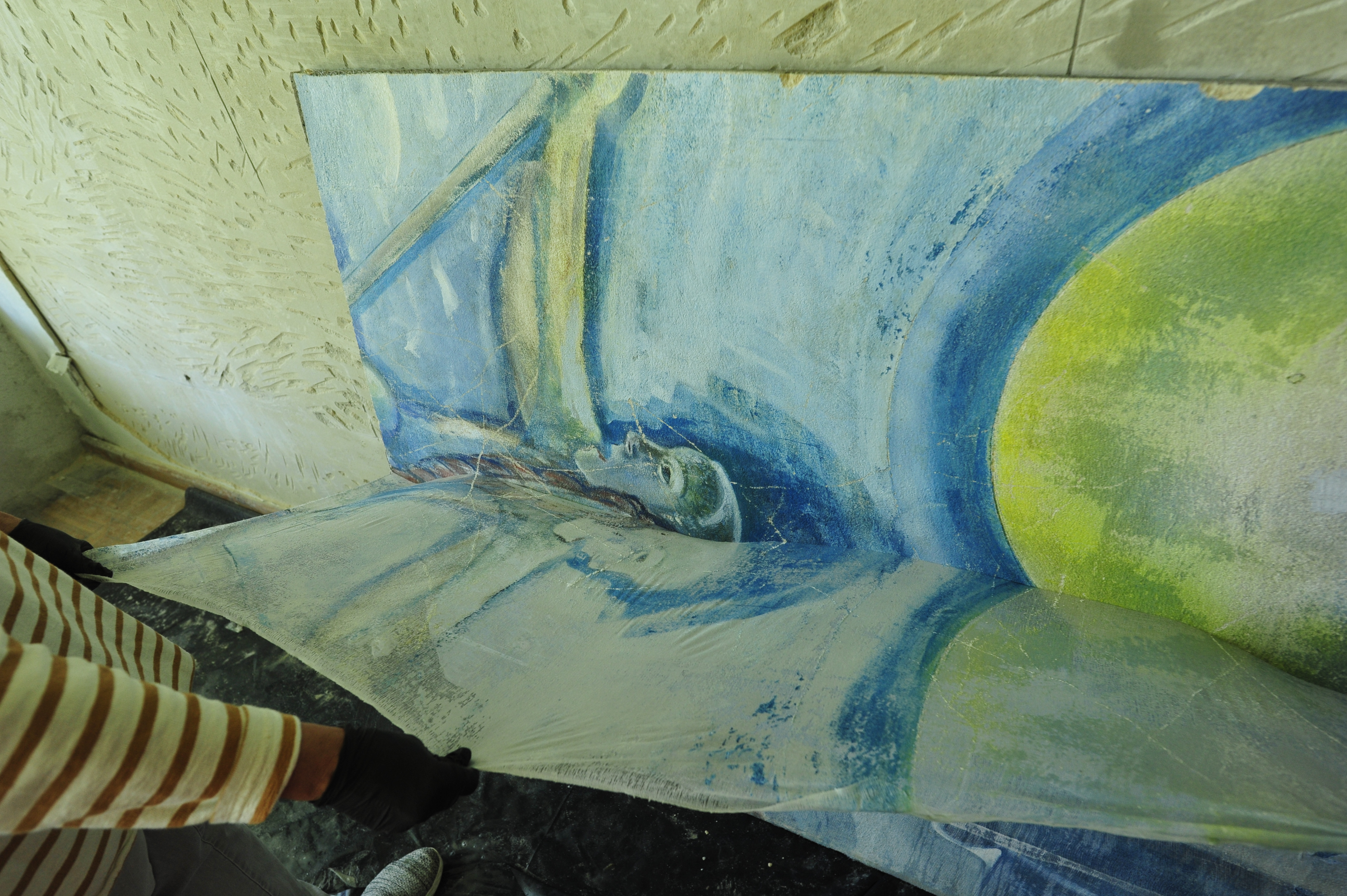 Removal of the Andrus Kasemaa mural as part of the summer internship of the Estonian Academy of Arts’ Cultural Heritage & Conservation Department and the Pallas students of the Pallas University of Applied Sciences
