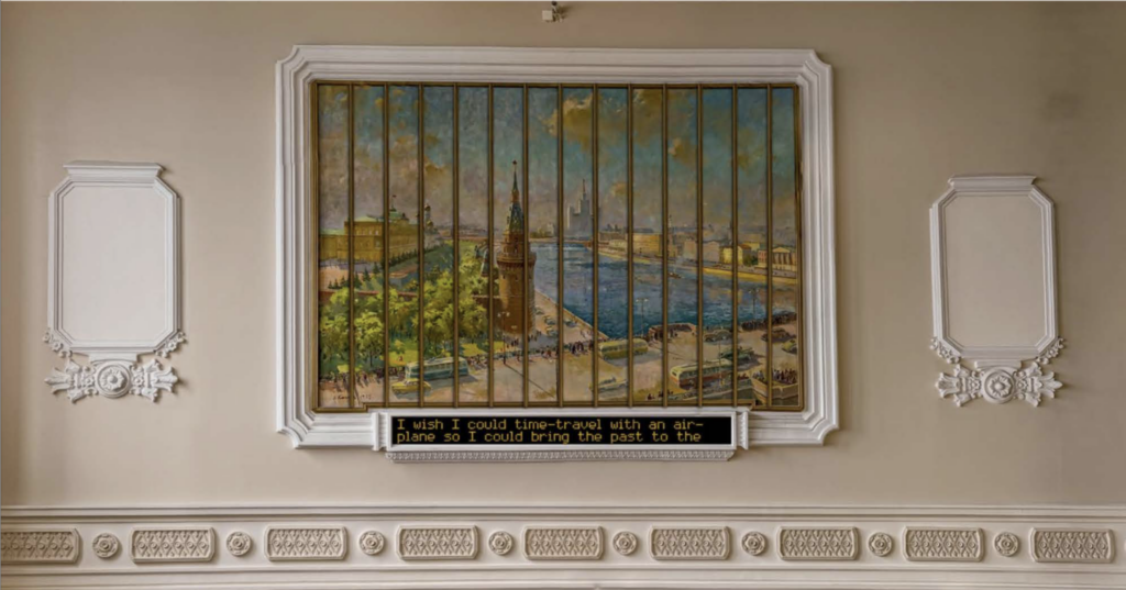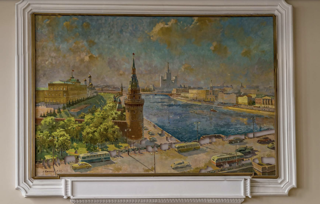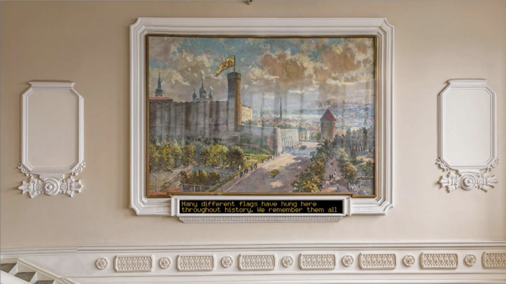 Pöördume kunstnike poole, et leida lahendus nende teoste kontekstualiseerimiseks ja ümber raamistamiseks. Lähteülesandeks on taandada maalidelt propagandistlik sümboolika, säilitades samas maalide osa interjööri ülesehituses. “Moskva vaade” vajab kriitilist ümberraamistust, Sagritsa teose puhul otsime lahendust Hermanni tornis lehviva punalipu osas – kas selle asendamist, kontseptuaalset kinnikatmist, raamistust vmt.
